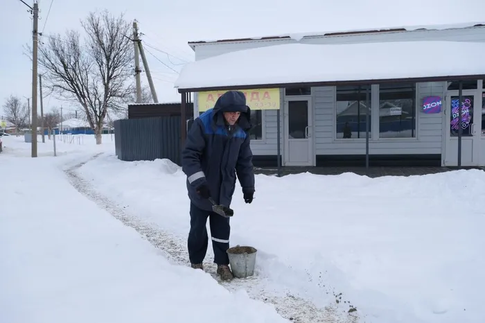 В две смены работают бригады по благоустройству нашего сельского поселения на расчистке дорог от снега.